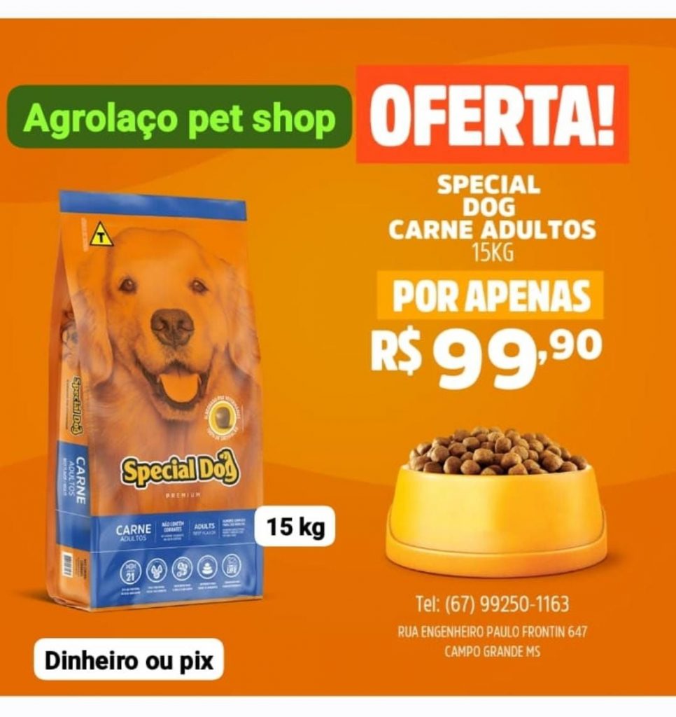 Veja essa: Special Dog carne para cães adulto saca de 15 quilos, por apenas R$99,90. Isso mesmo, só 99,90!