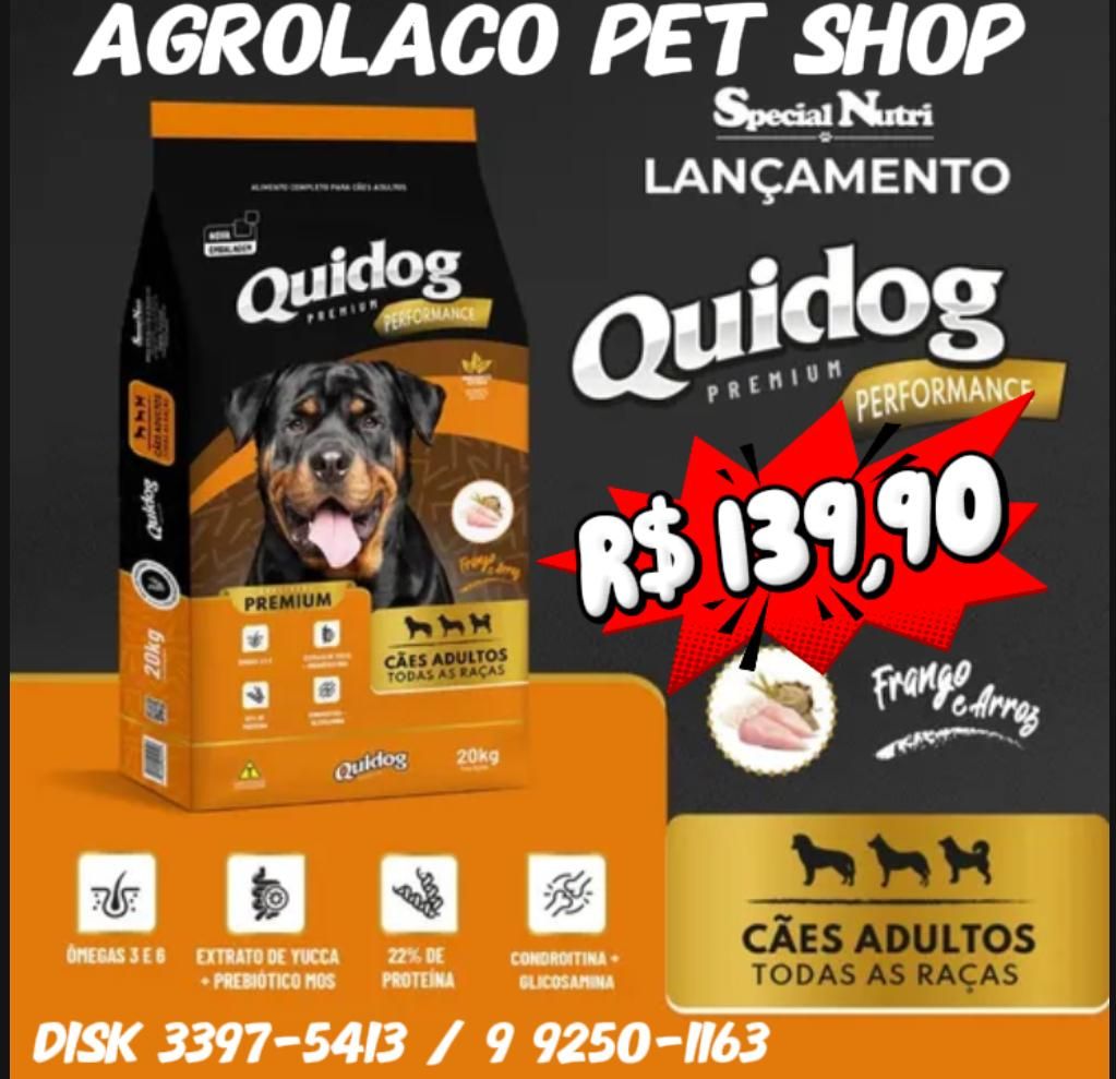 Veja essa! Lançamento da marca Quidog, para cães adultos de todas as raças, por apenas R$ 139,90.