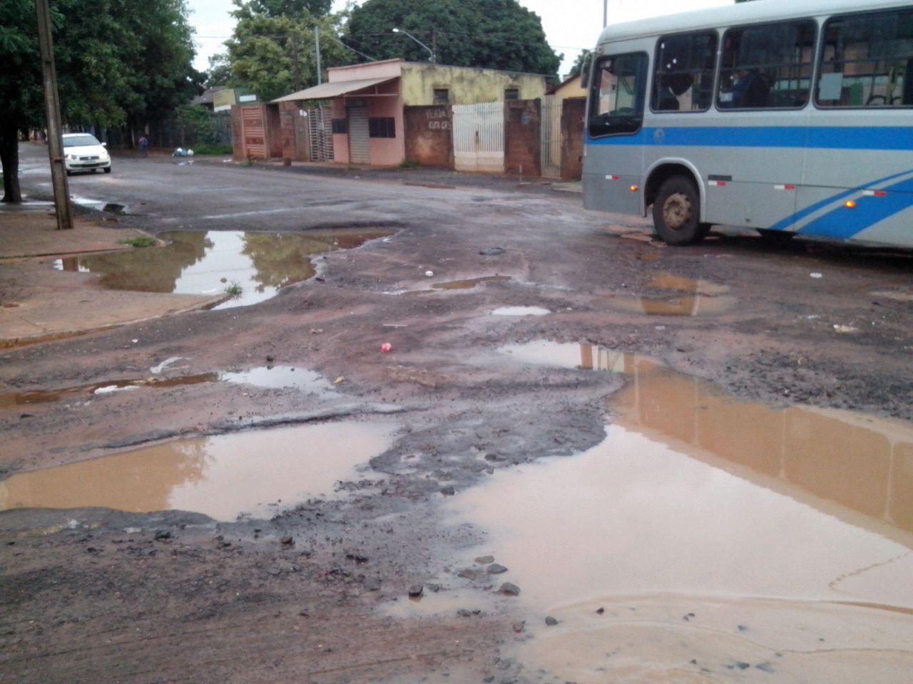 Apesar de sere “asfaltada”, ruas do bairro Centro Oeste estão todas esburacadas dificultando o tráfego de todos, inclusive de pedestres e até ônibus (Foto: Arquivo)
