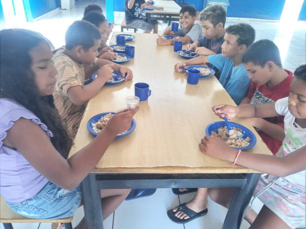 Após intensas atividades realizadas no período da manhã, as crianças da Colônia de Férias, têm direito ao almoço (Foto: Divulgação)