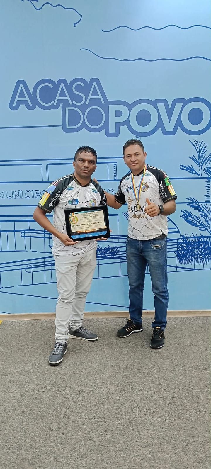 Responsáveis pelas organizações de dois campeonatos, Júlio do Campo Nobre (e) e Tuíca, receberam justa homenagem na Câmara Municipal pelas realizações esportivas (Foto: Divulgação)