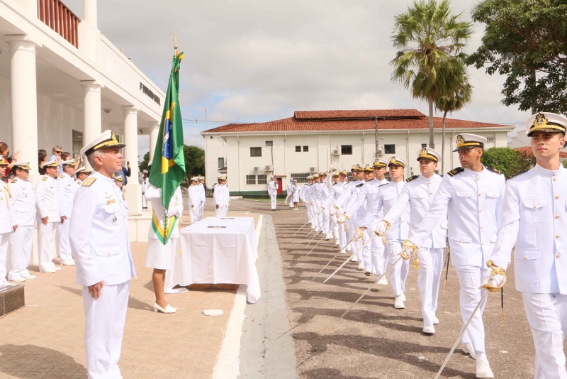 Formandos desfilam em continência à Bandeira Brasileira, durante solenidade realizada no 6º Distrito Naval em Ladário (Foto: Arquivo)